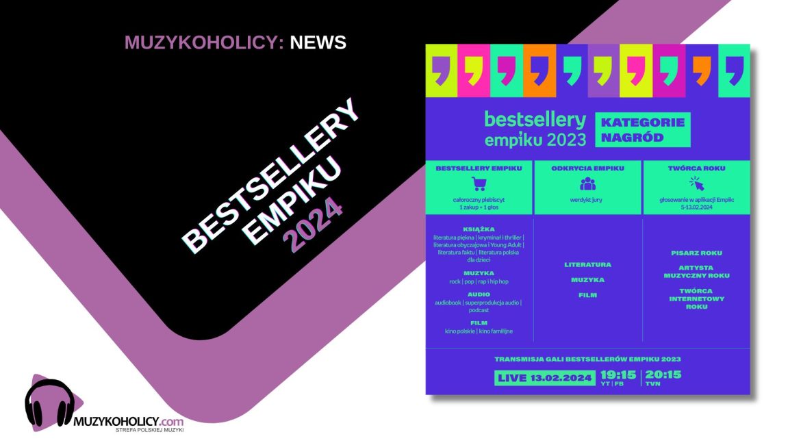 W tej edycji Kultura Cyfrowa zmienia nazwę na Audio, co lepiej oddaje jej specyfikę i charakter, bo przecież nagradzane są najchętniej słuchane produkcje. W ramach Książek – w odpowiedzi na duży wzrost popularności gatunku – powróciła kategoria Literatura faktu, natomiast Literatura obyczajowa i Young Adult zostały scalone w jedną kategorię. Za to w Muzyce rozdzielono Rock i Pop, tak aby odpowiednio docenić twórców najgorętszych premier, których w 2023 roku nie brakowało. Z kolei w Filmie – ze względu na zmiany w preferencjach widzów – połączono dwa ważne kanały: sprzedaż nośników fizycznych w Empiku oraz wyniki oglądalności w Multikinie wśród użytkowników Empik Premium. Nagroda odzwierciedli zatem realne zainteresowanie produkcją, niezależnie od kanału dystrybucji. Nominacje w 13 bestsellerowych kategoriach zostaną ogłoszone już w połowie stycznia.
