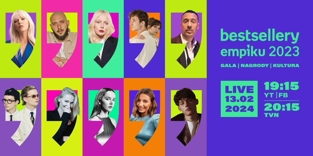 Galę Bestsellerów Empiku 2023 będzie można śledzić na antenie TVN od 20.15 i w streamingu na empikowym kanale na YouTube oraz na Facebooku już od 19.15. Będą relacje zza kulis i z czerwonego dywanu, komentarze na gorąco, wywiady i dodatkowe wykony muzyczne. Gospodarzami transmisji internetowej będą: Julia Wieniawa, Aleksandra Domańska i Damian Tkaczuk, a galę telewizyjną poprowadzi Marcin Prokop.