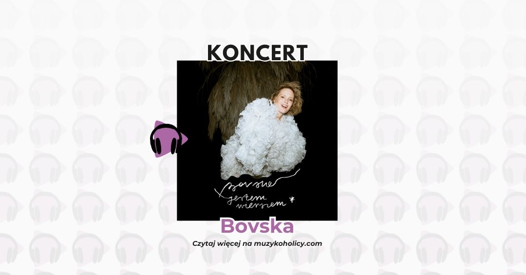 JESTEM WIERSZEM – tak brzmi tytuł mojego szóstego długogrającego albumu, który ukaże się 19 września 2025 roku. Już teraz możecie kupić bilet na nasz koncert w Warszawie! Będzie intymnie, będziemy patrzeć sobie w oczy i wspólnie przeżywać to co niesie ze sobą muzyka i słowa. Zabiorę Was w podróż transformacji. Mam nadzieję, że spotkamy się by razem przeżyć emocje, które płyną prosto od serca do serca. I że Wy zabierzecie kawałek moich historii ze sobą, wychodząc z koncertu i uśmiechając się do siebie szeroko. Będziemy się razem dobrze bawić i dobrze wzruszać. Zapraszam Was do wspólnego bycia! – Bovska