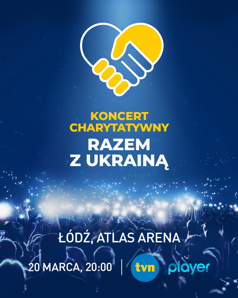 20 marca, w Łodzi odbędzie się wyjątkowy koncert charytatywny, którego celem będzie zebranie jak najwyższej kwoty na rzecz pomocy obywatelom Ukrainy. Całkowity dochód z wydarzenia zostanie przekazany Polskiej Akcji Humanitarnej, która prowadzi szeroko zakrojone działania pomocowe. Na scenie Atlas Areny wystąpią zarówno polscy jak i ukraińscy artyści. Emisja: 20 marca o 20:00 na antenie TVN oraz w Player.pl. Bilety już w sprzedaży!