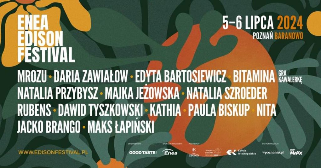 Czas zaplanować muzyczny relaks nad jeziorem Kierskim! Muzyka, bliskość natury i odpoczynek od zgiełku miasta to słowa najtrafniej charakteryzujące Enea Edison Festival. W pierwszy weekend lipca, na dwóch scenach w podpoznańskim Baranowie, zagrają legendy polskiej muzyki oraz autorzy i autorki przebojów ostatnich miesięcy. MROZU, Daria Zawiałow, Edyta Bartosiewicz, Bitamina gra Kawalerkę, Natalia Przybysz, Majka Jeżowska, Natalia Szroeder, Rubens, Dawid Tyszkowski, Kathia, Paula Biskup, Nita, Jacko Brango i Maks Łapiński to potwierdzone gwiazdy festiwalu, który odbędzie się w dniach od 5 do 6 lipca.